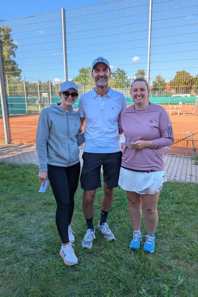 An dem Wochenende 05.09. – 07.09.2025 wurden die Halbfinale und Finale unserer diesjährigen Clubmeisterschaft bei schönstem Tenniswetter ausgespielt. Im Anschluss an die Endspiele fand die Siegerehrung statt. Die Übergabe der “Siegesprämien” an die verhinderten Sieger bzw. Vizemeister holen wir kurzfristig nach.